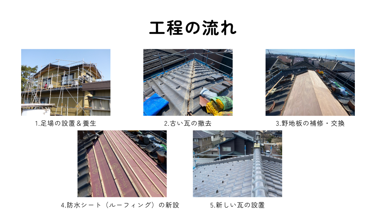 瓦屋根の修理にはいくつか方法がありますが、「葺き替え」はその中でも屋根をまるごとリニューアルする大掛かりな工事です。