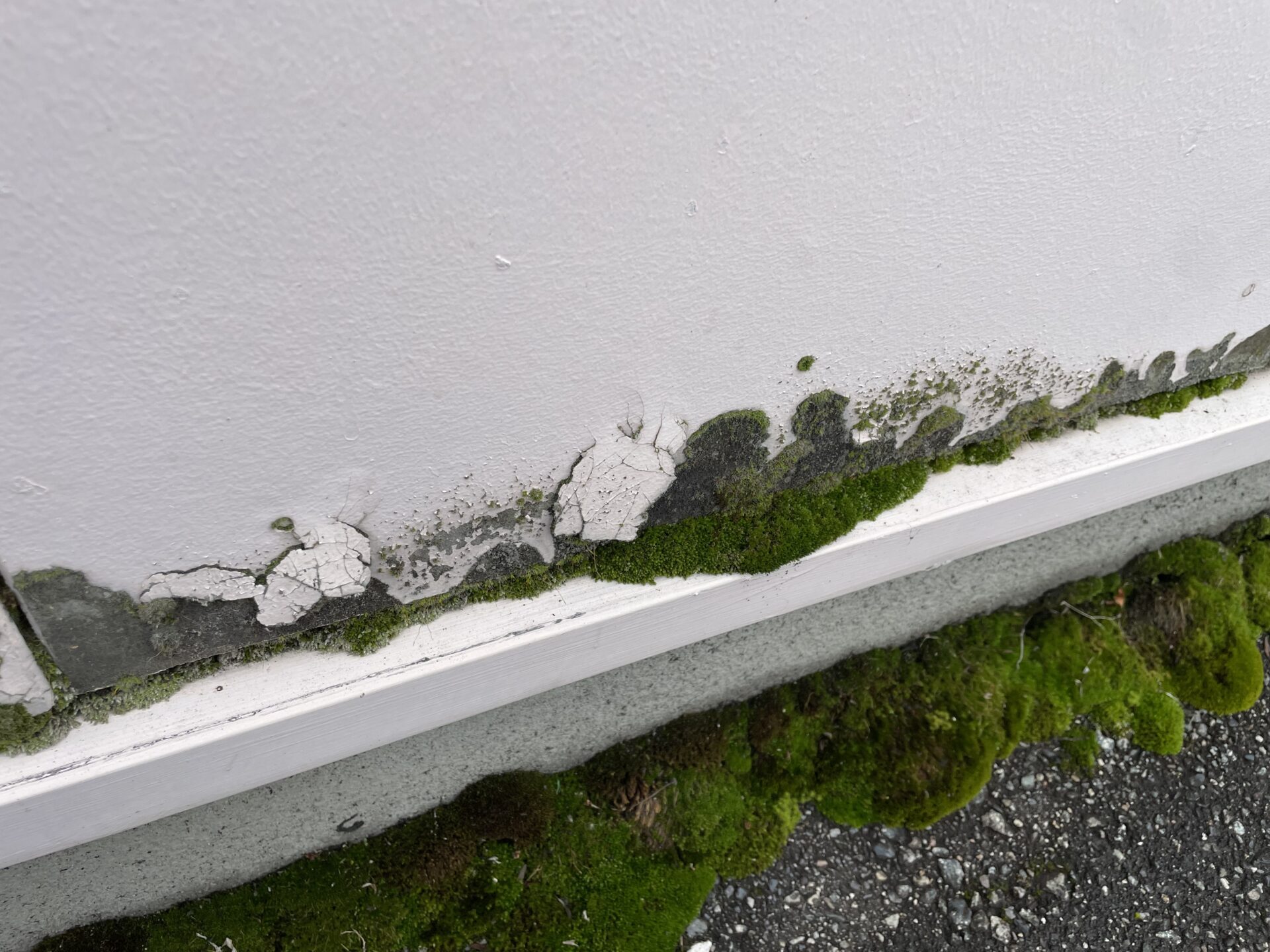 実際に富山市で白の外壁塗装を施工した住宅では、北面にコケが発生しました。北面は日当たりが悪いからです。