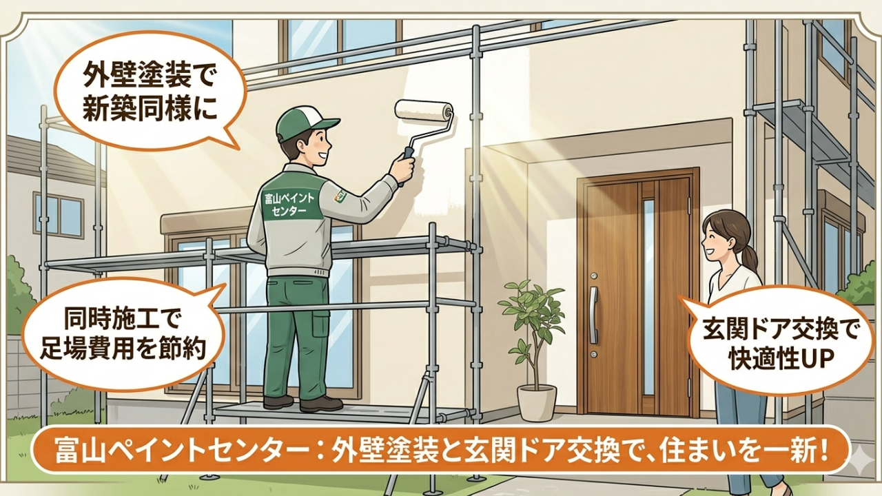 富山市で外壁塗装を検討している方の中には玄関ドア交換リフォームも同時に行う方が増えています。