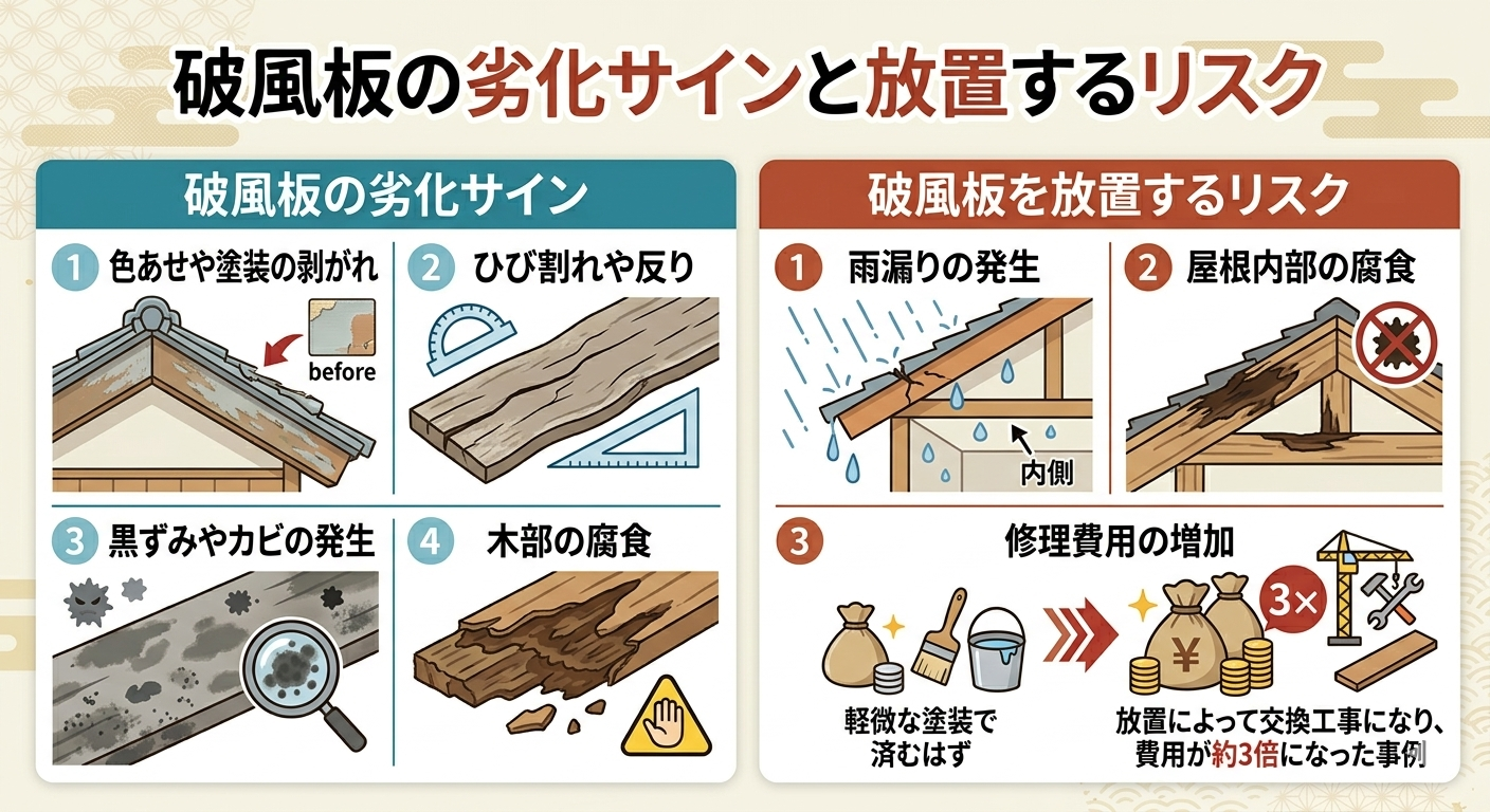 破風板の劣化を放置すると、次のようなリスクがあります。