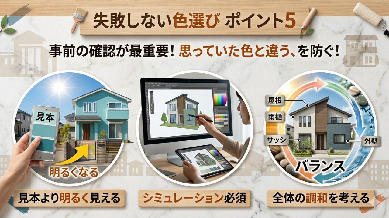 外壁塗装で最も多い後悔は「思っていた色と違う」というケースです。