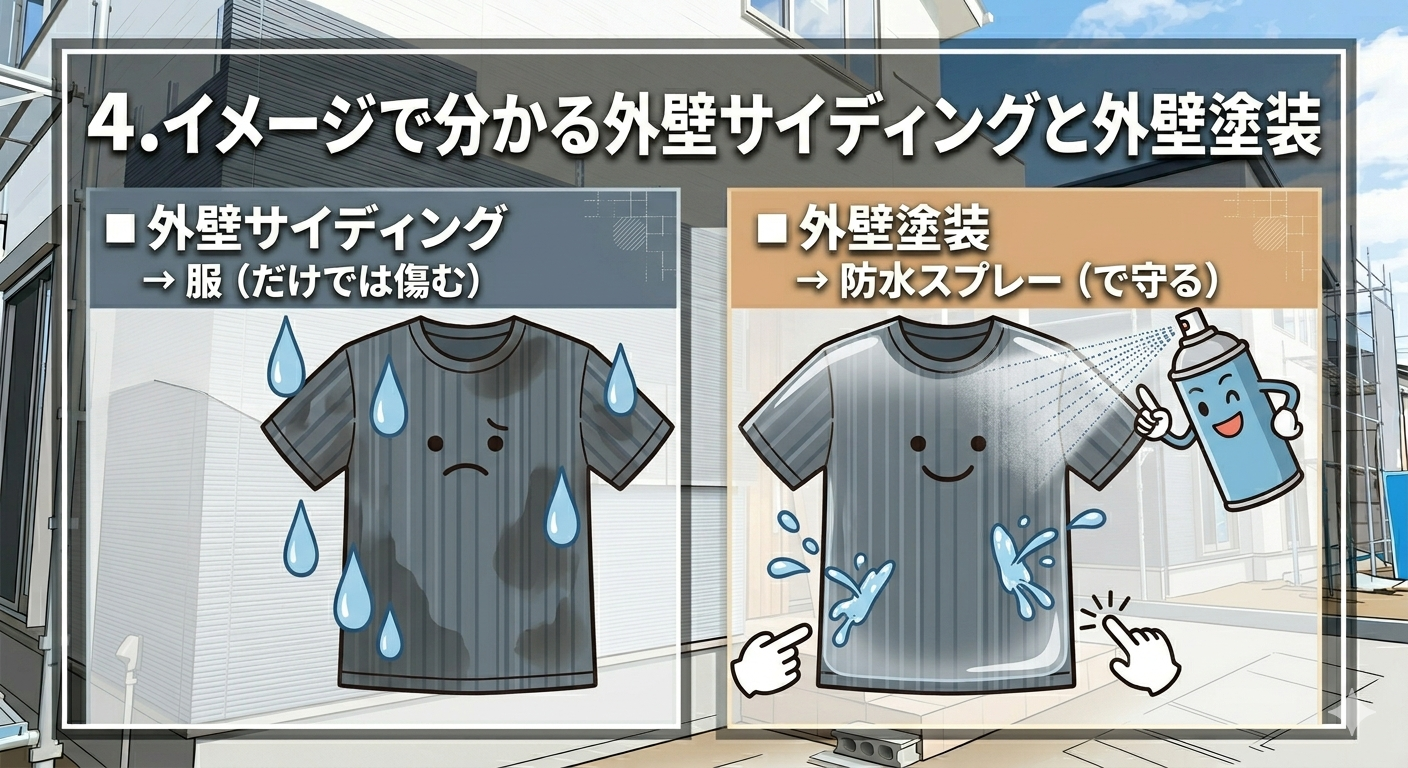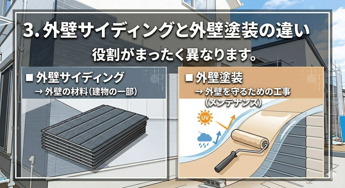 外壁サイディングと外壁塗装は似ている言葉ですが、意味はまったく違います。