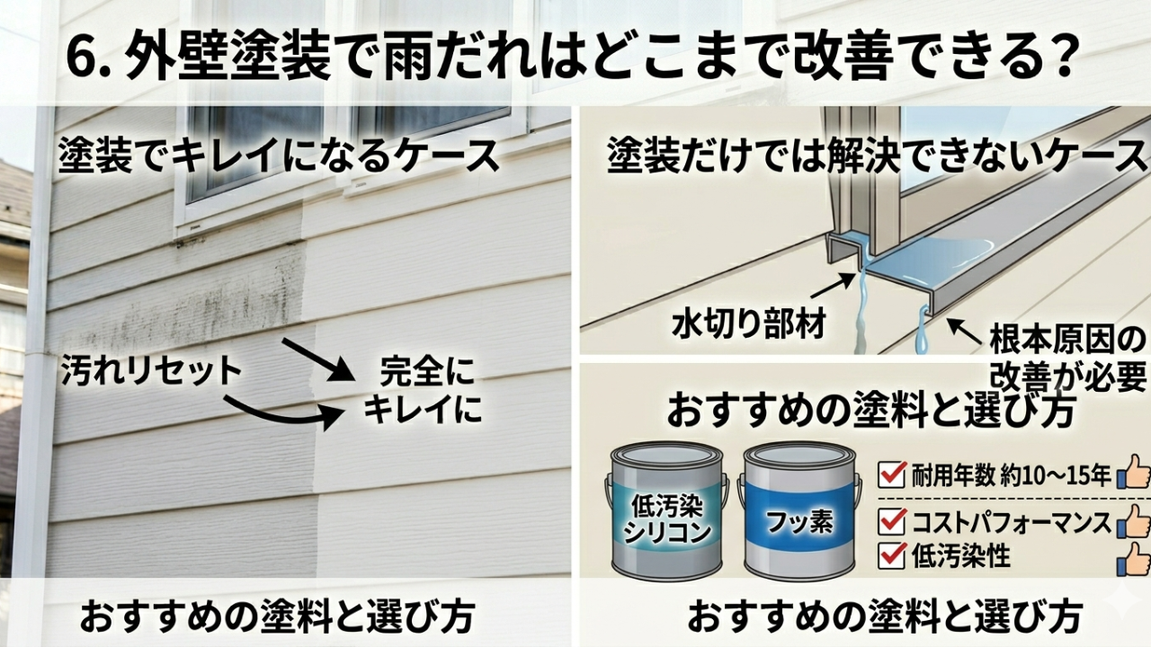 6. 外壁塗装で雨だれはどこまで改善できる?