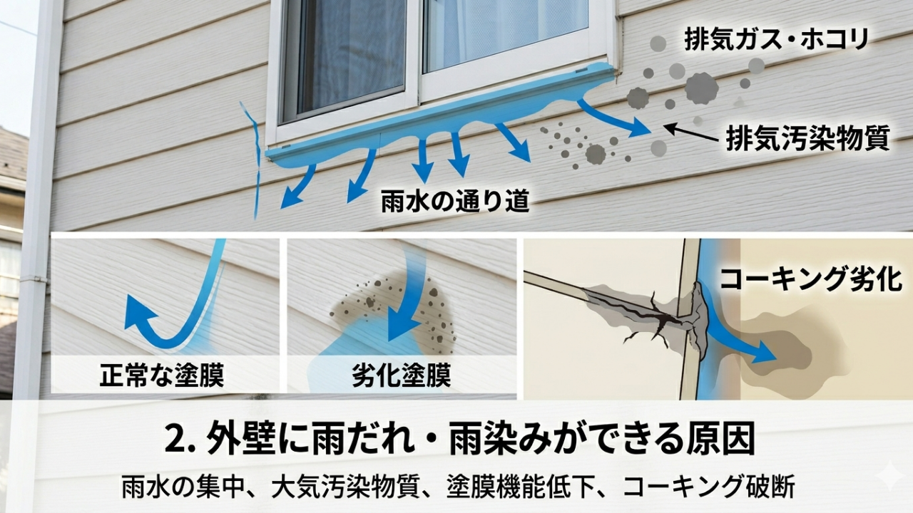 2. 外壁に雨だれ・雨染みができる原因