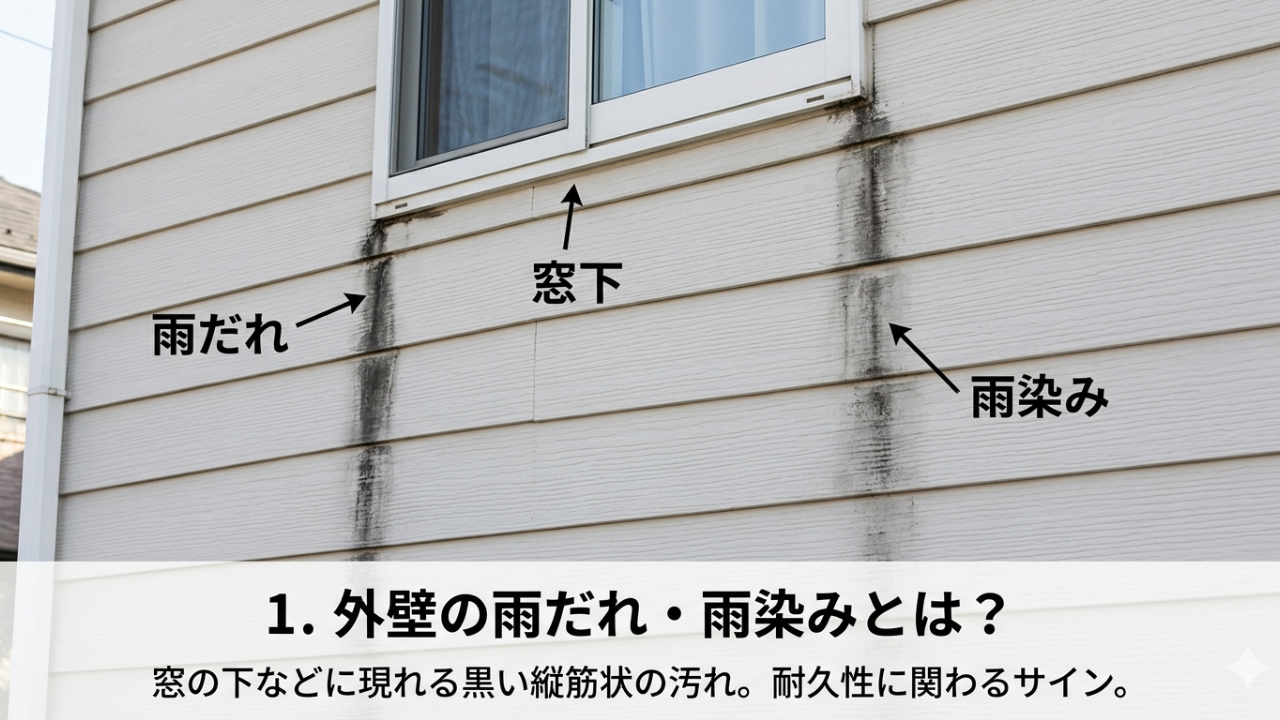 外壁の雨だれ・雨染みは、見た目の問題だけでなく建物の劣化サインでもあります。