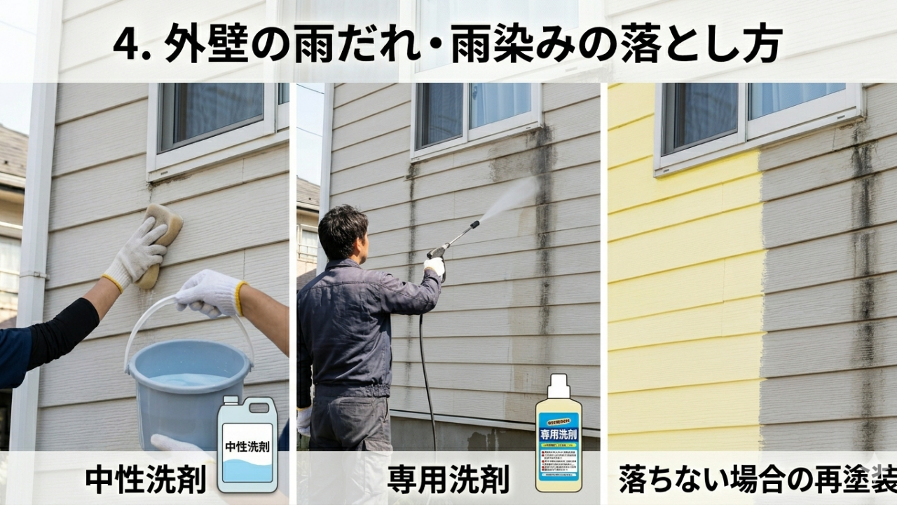 4. 外壁の雨だれ・雨染みの落とし方