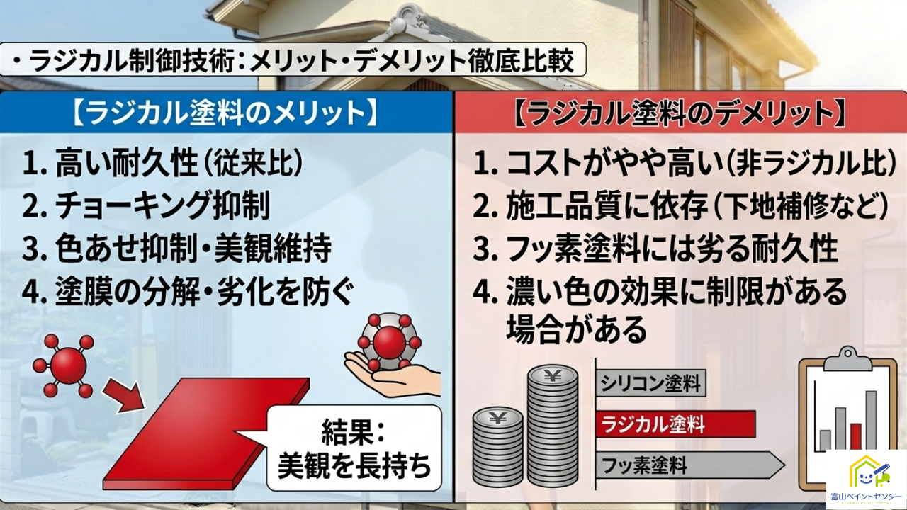 外壁塗装でラジカル塗料を選ぶかどうかは、メリットとデメリットを理解することが重要です。