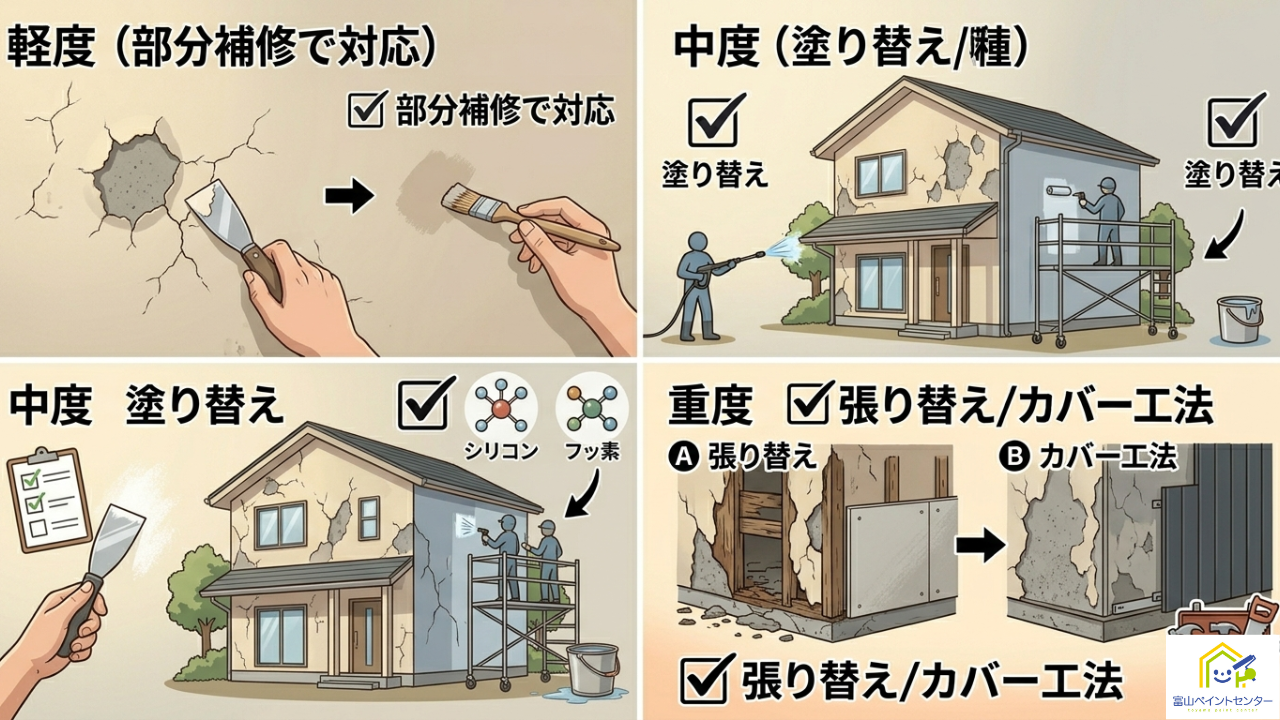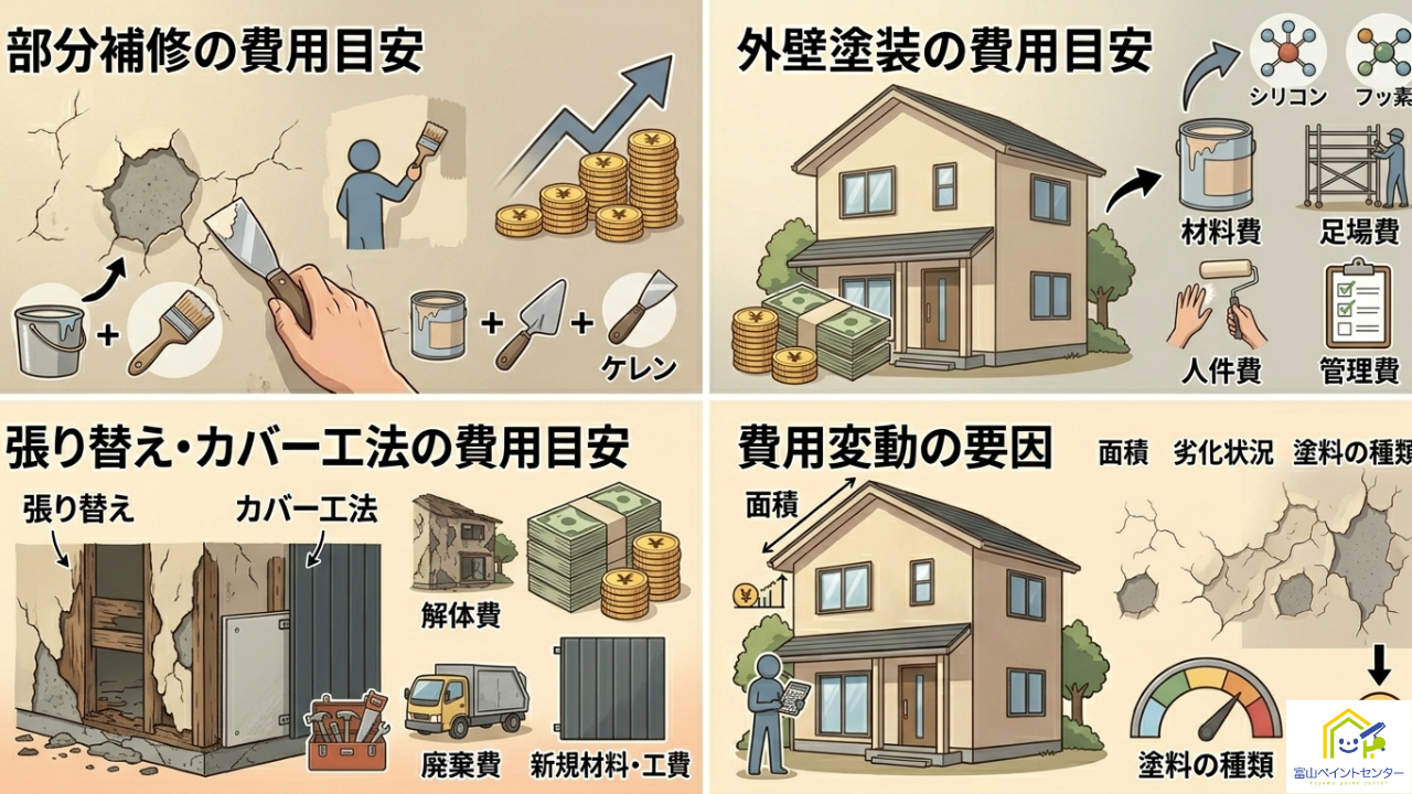 部分補修で済む状態でも、放置すると全面外壁塗装が必要になります。