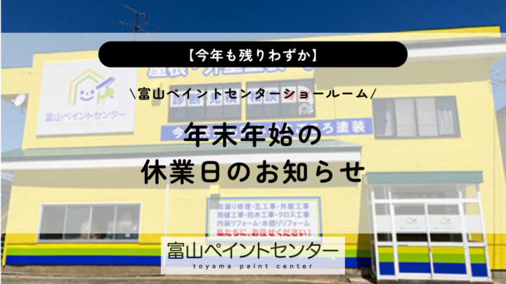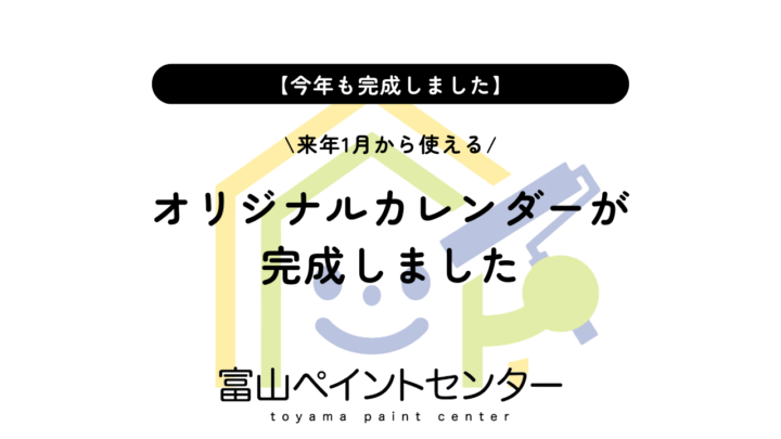 来年のオリジナルカレンダーが完成しました こんにちは!富山市の外壁塗装・屋根工事・雨漏り専門店、富山ペイントセンターです!いつもブログを読んでいただきありがとうございます✨ このたび、来年のオリジナルカレンダーが完成いたしました。 毎年楽しみにしてくださっている方も多く、スタッフ一同とても嬉しく思っております。日常の中でふと目にしたときに、少しでも皆さまのお役に立てる存在になれば幸いです。 本年も多くのお客様、地域の皆さまに支えられ、無事に一年を終えようとしています。日々いただくご縁や温かいお言葉に、心より感謝申し上げます。 来年も、皆さまに安心してお任せいただけるよう、スタッフ一同より一層努力してまいります。変わらぬご愛顧を賜りますよう、どうぞよろしくお願いいたします。 寒さが厳しくなる季節ですので、どうぞお身体にはお気をつけて、良い年末年始をお過ごしください。 ✅内部リンク(おすすめ関連記事) ・雨漏りが増加中!雪が降る前に確認すべきメンテナンスポイント・外壁塗装の色選び:あなたの家を引き立てる5つのポイント・外壁塗装の必要性とは?家の美しさと耐久性を保つために 私たちは、富山市を中心とした 地域密着で建物を長持ちさせる施工メーカー 昭和50年に創業し、地域の皆さまから選ばれ続けてきました。 外壁・屋根塗装や雨漏り工事で建物を長持ちさせ、 「10年後、20年後の塗装も 富山ペイントセンターに依頼したい!」 これからもそう思っていただけるよう、 私たちは外壁塗装、屋根塗装・雨漏り工事の技術力・品質を磨きます。 そして、皆さまが笑顔で喜んでいただける 外壁塗装、屋根塗装・雨漏り工事専門店にしていきたいと思いますので、 どうぞよろしくお願いいたします。 富山ペイントセンターはご相談、診断、お見積りは無料です。 お気軽にご相談ください。 お問い合わせはコチラ 富山ペイントセンターは富山市草島と富山市花園町にショールームを構えています。 ショールームでは実物サンプルを見て、専門家に話を聞くことが出来ます。 他にも、実際のお家の写真でカラーシミュレーションを行い お住まいの新しい表情を見ることもでき、 塗装した際のイメージをつかみやすくなります。 ご来店予約はコチラ ※ページ下部にあります。お問い合わせ、ご相談は気軽におかけください。 0120-808-133
